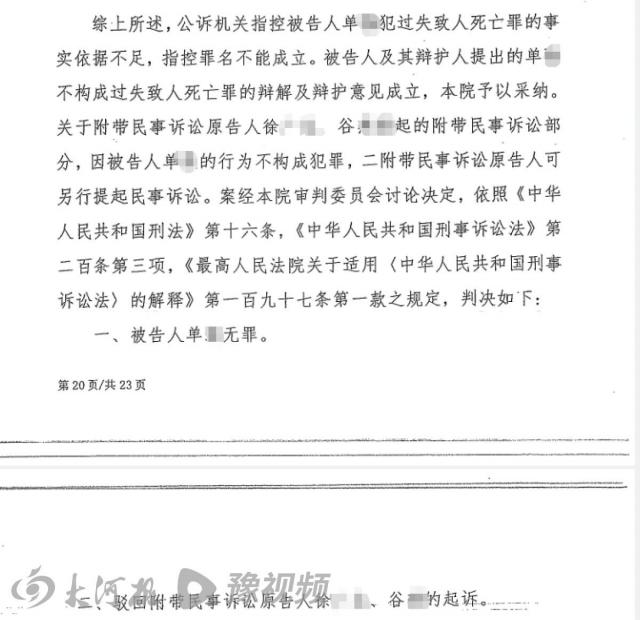 10 月 24 日,大河报《看见》记者从逝者家属处获悉,该案二审维持原判。此前,检方以过失致人死亡罪对单某提起公诉,法院一审判决单某无罪。