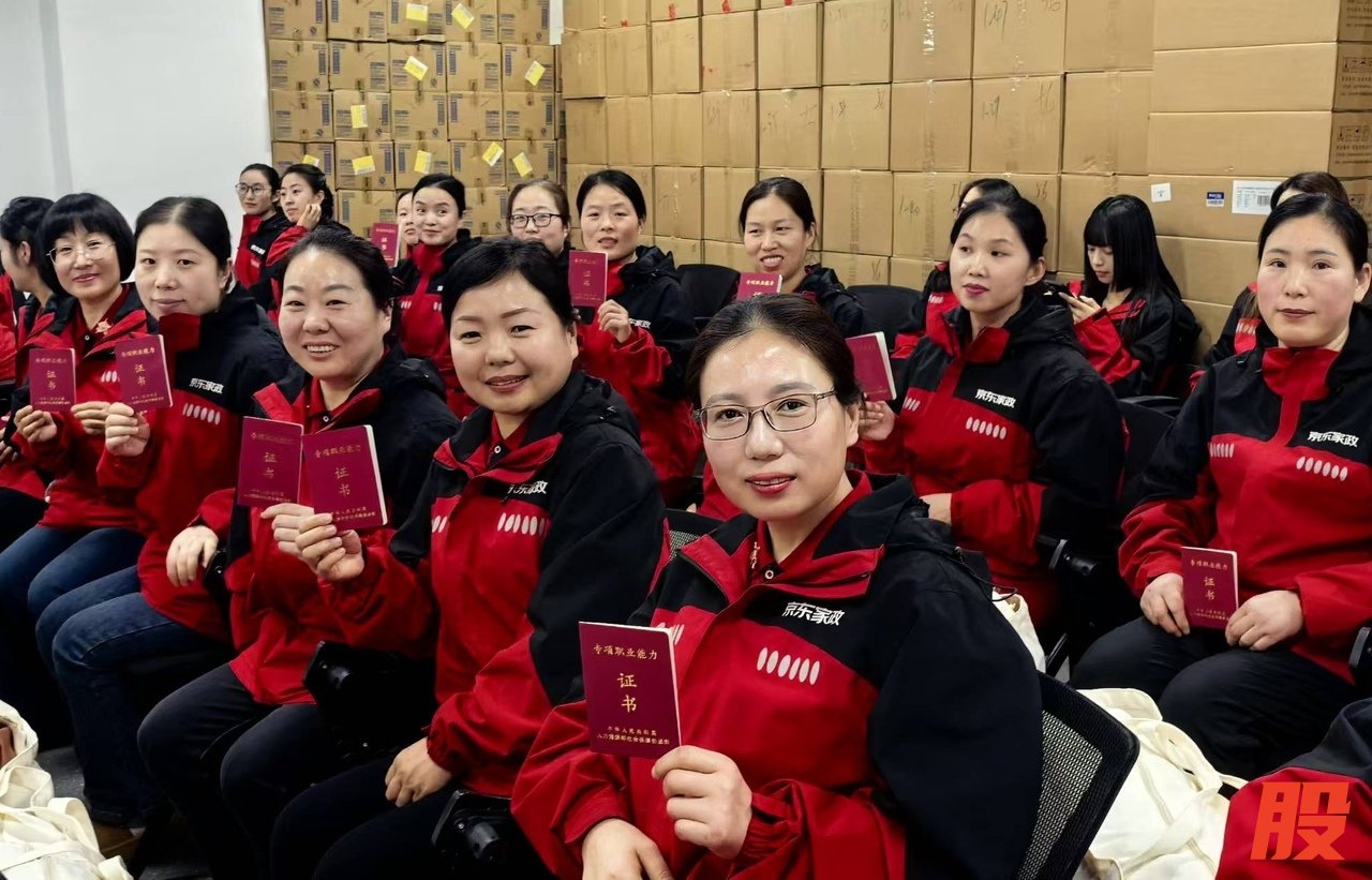 近日,“北京家政”培训评价标准推行会暨“匠心筑品质,服务暖万家”专项能力证书颁发仪式在京东家政北京培训中心举行。活动由北京市人力资源和社会保障局主办,为通过培训及考核的近2400名京东家政从业人员颁发了家庭清洁和家电清洗两个职业方向的专项能力证书。
