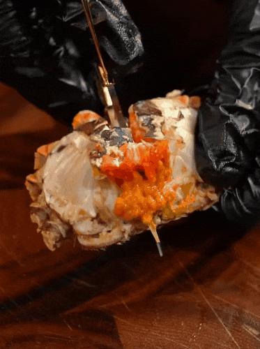 无论是直播还是宣传视频中,都会展示金灿灿的蟹黄和鲜嫩的蟹膏。