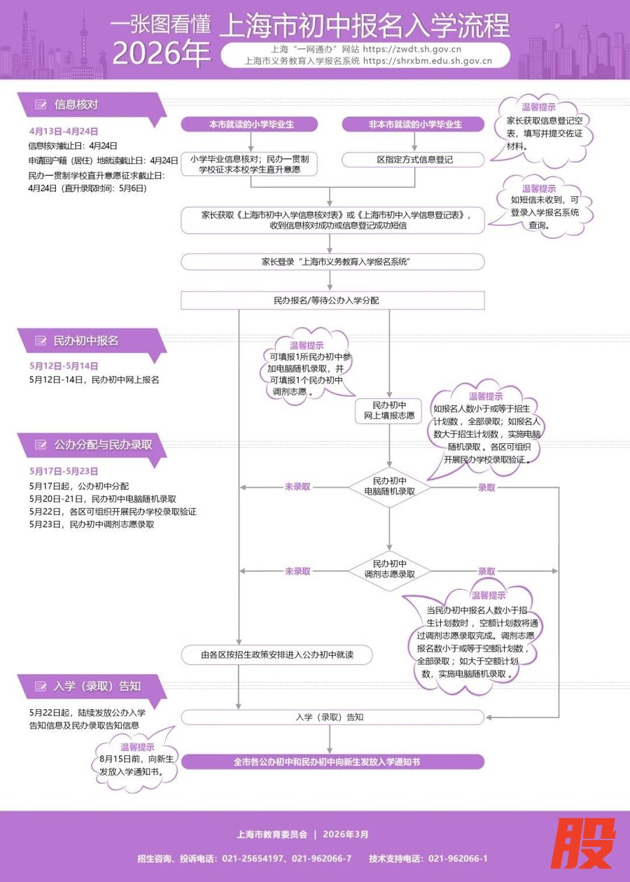 今天(3月26日),上海市教委公布了《2026年本市义务教育阶段学校招生入学工作的实施意见》,政策与2025年保持一致,体现阳光招生、便民服务、不挑生源、保障公平的导向。